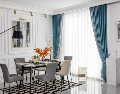 設(shè)計(jì)理念:這一抹藍(lán)仿佛那安撫人心的大海,在黑白灰的空間里,傳遞出一種令人信賴的清新感與誘惑力,黑橡色的錯(cuò)落幾何如海浪輕觸礁石,在靜謐的時(shí)光角落里,沉淀自己,享受生活。