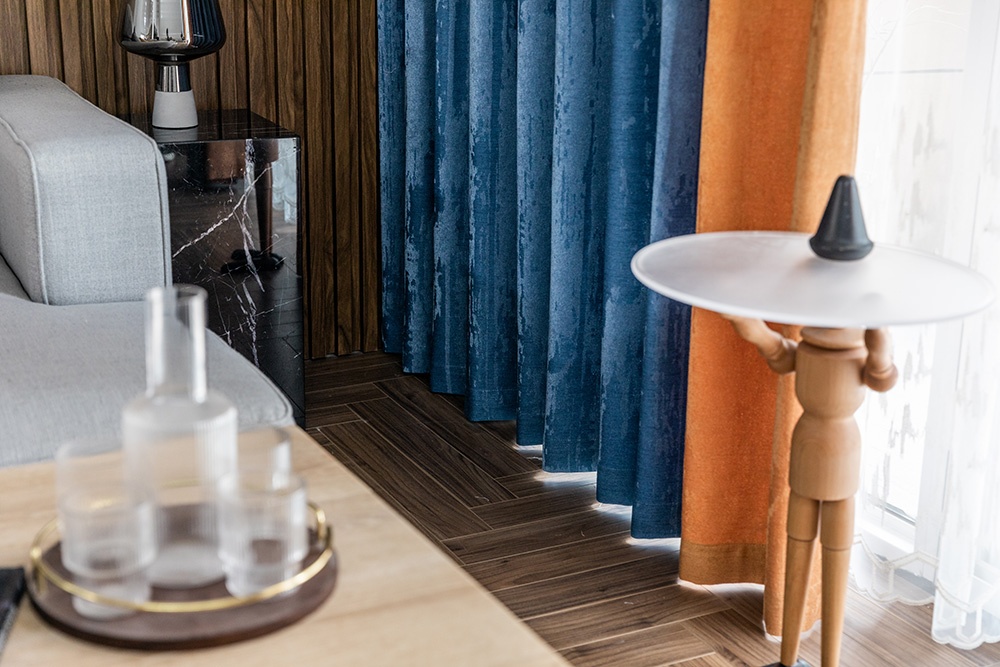 設(shè)計(jì)理念:藍(lán)之深邃與唯美,像圣托尼里的海岸,分明冷靜卻流淌著愛情花火迸發(fā)的浪漫。一縷縷的富麗琥珀既是沙灘維形,驕傲清晰的點(diǎn)綴著藝術(shù)芳華的百年。