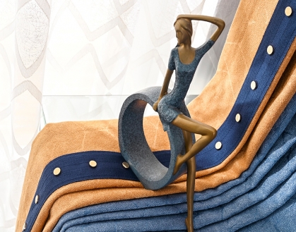 設(shè)計(jì)理念:寶藍(lán)作為中國(guó)藍(lán)的經(jīng)典,低調(diào)于囂張并存,明朗缺不失貴氣,琥珀色好比落日余暉,再點(diǎn)配花青色的金屬花邊,“落霞與孤鶩齊飛,天水共長(zhǎng)天一色”,這是酉時(shí)色彩最長(zhǎng)情的贊歌。
